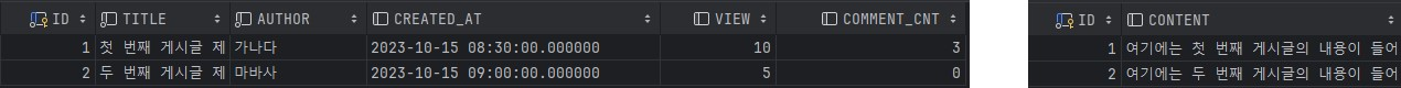 이렇게 분리하면, 무거운 content는 다른 테이블로 이동했으므로 게시글 목록을 불러올 때 빠른 Select가 가능하게 되었습니다. 만약에 전체 게시글 정보가 필요하면, join을 적절히 활용하면 되겠죠?