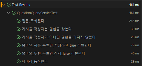 컴파일 에러도 해결되었고, 테스트도 모두 정상적으로 동작합니다.