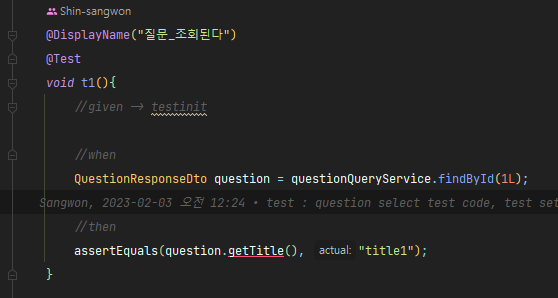 assertEquals(savedQuestion.member().getEmail(), "member1@test.com");