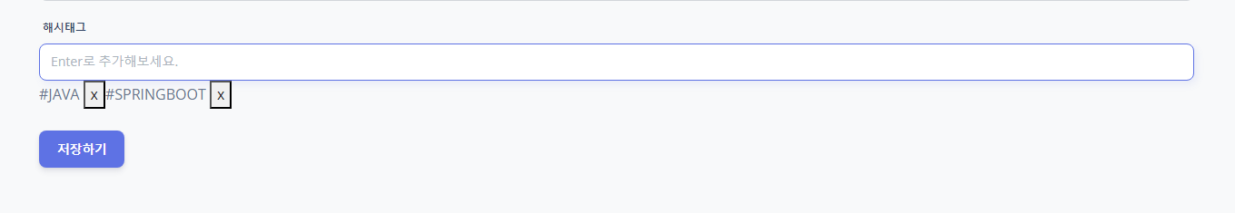 X키를 눌러서 삭제할 수도 있어요. 이렇게 만들어진 태그들이 아까 수정한 DTO에 List로 전달됩니다.