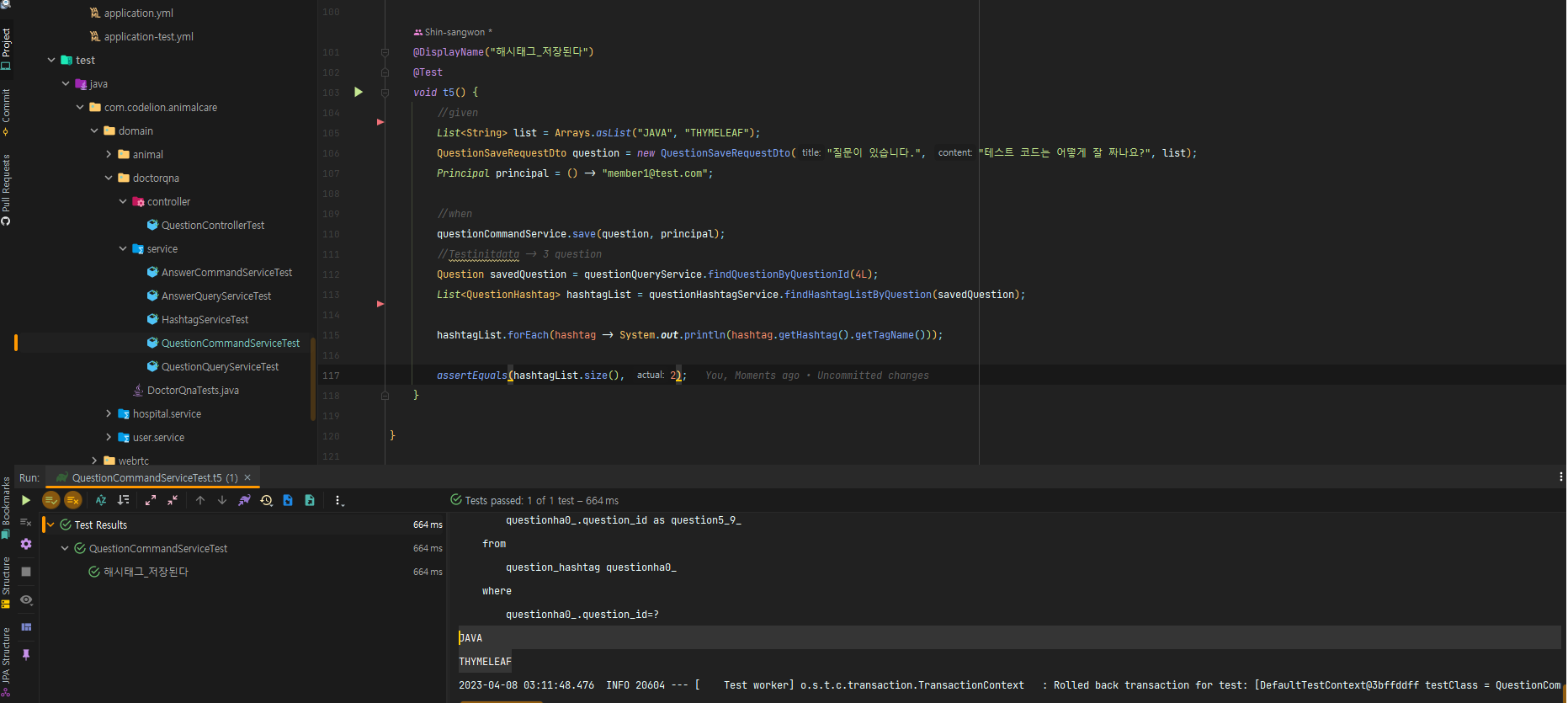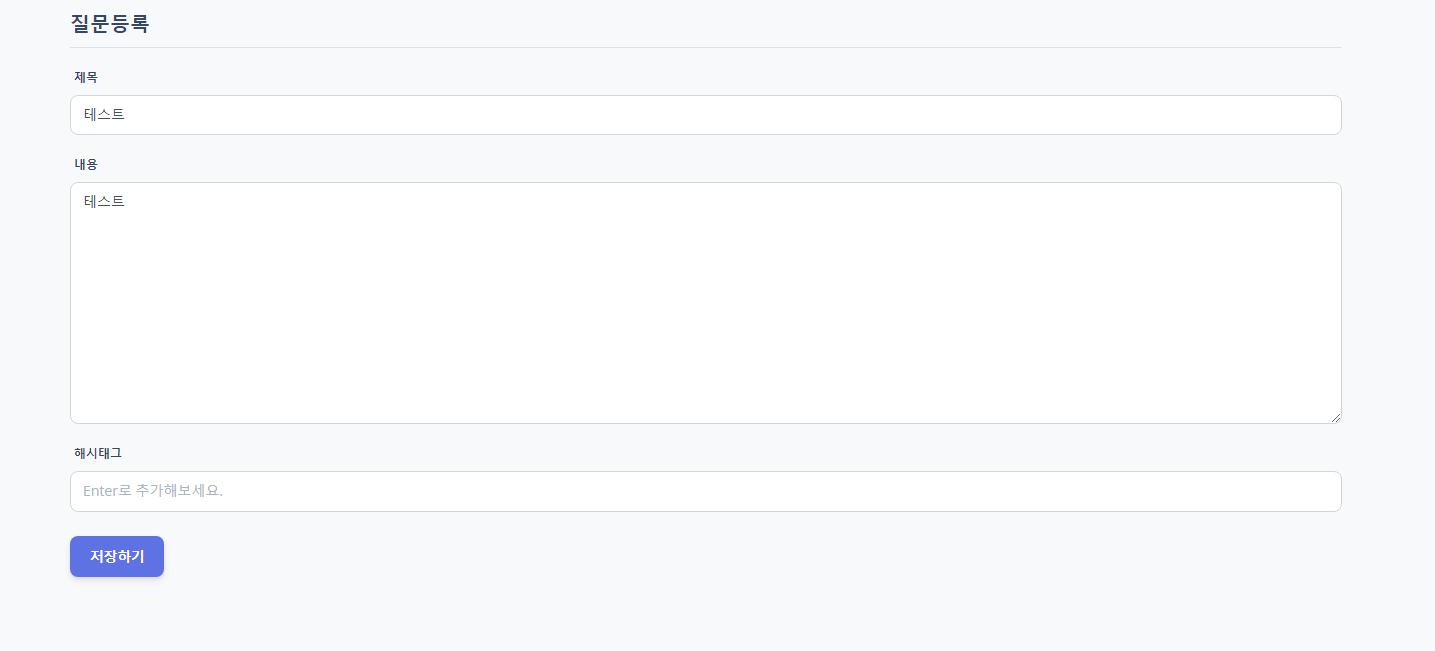 우선, 받아온 DTO를 통해서 게시글(제 경우에는 Question입니다.)을 저장해 줍니다. 그 뒤에, 해시태그도 저장해 줍니다.